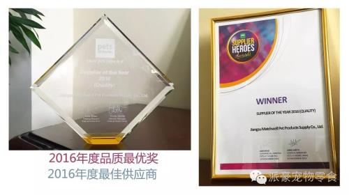 歐洲傳來派豪喜訊:派豪寵物零食憑借優(yōu)秀的品質和爆棚的人氣,從眾多的寵物食品中脫穎而出,榮獲英國寵物連鎖超市巨頭PETS AT HOME頒發(fā)的2016年度品質最優(yōu)獎,同時益和公司獲得2016年度最佳供應商稱號。